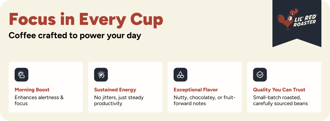 Kickstart your back-to-school and work routine with Lil Red Roaster coffee — fueling focus, energy, and productivity with every flavorful cup.