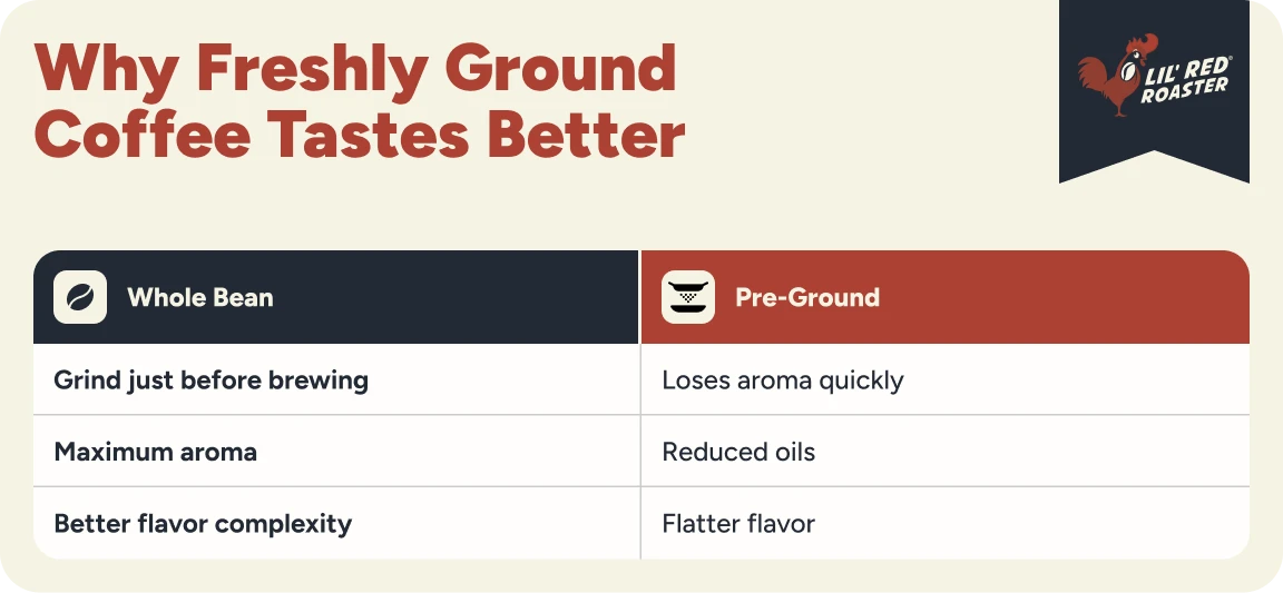 Whole bean coffee allows more control over grind size and freshness.